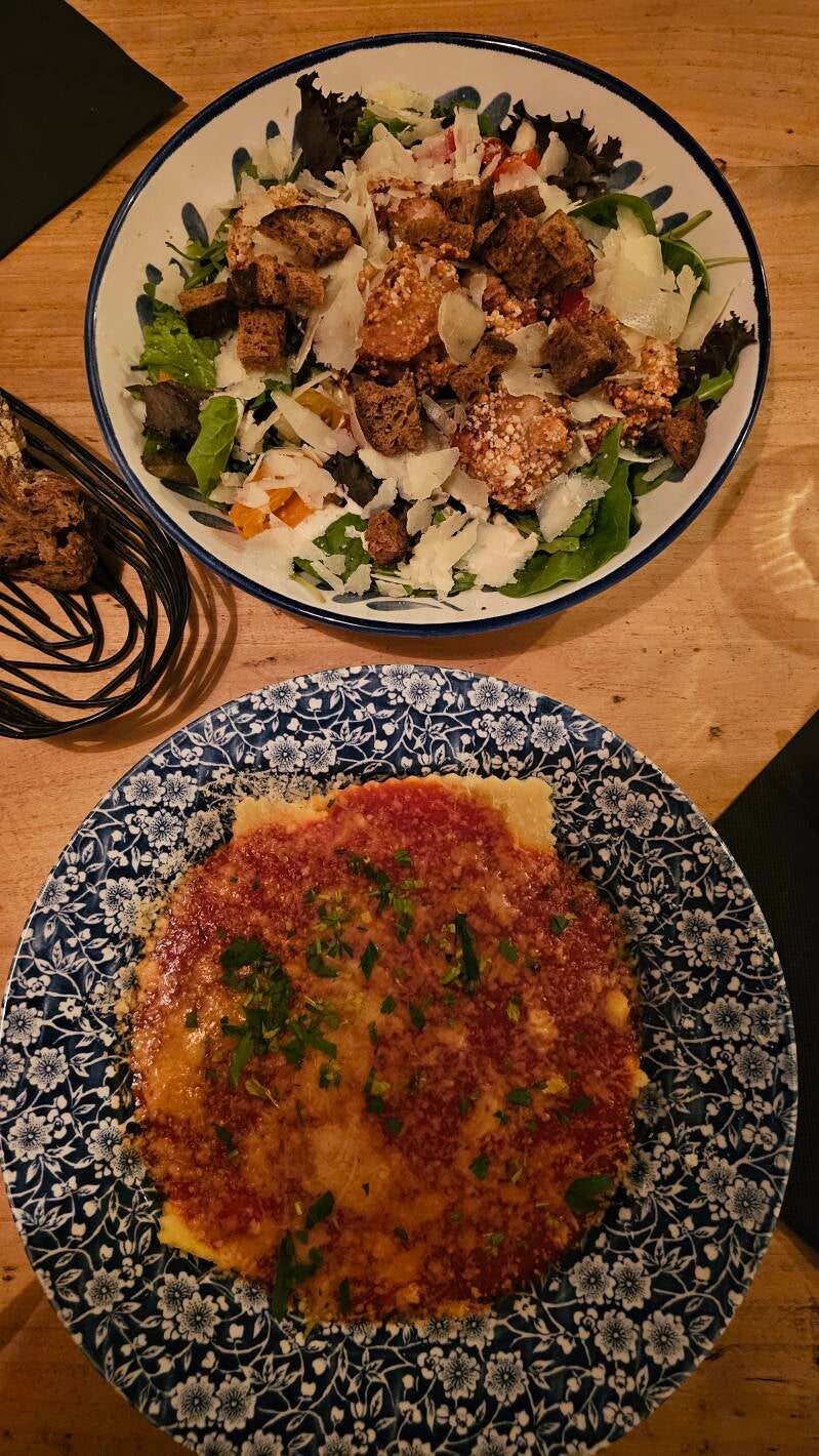 Mit leckerer Vorspeise und Hauptgericht
